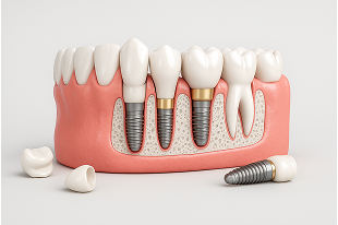 Dental implants are a long-lasting, natural-looking replacement for missing teeth. Designed to fuse with your jawbone, implants restore not only your smile but also full function — allowing you to eat, speak, and smile with confidence.